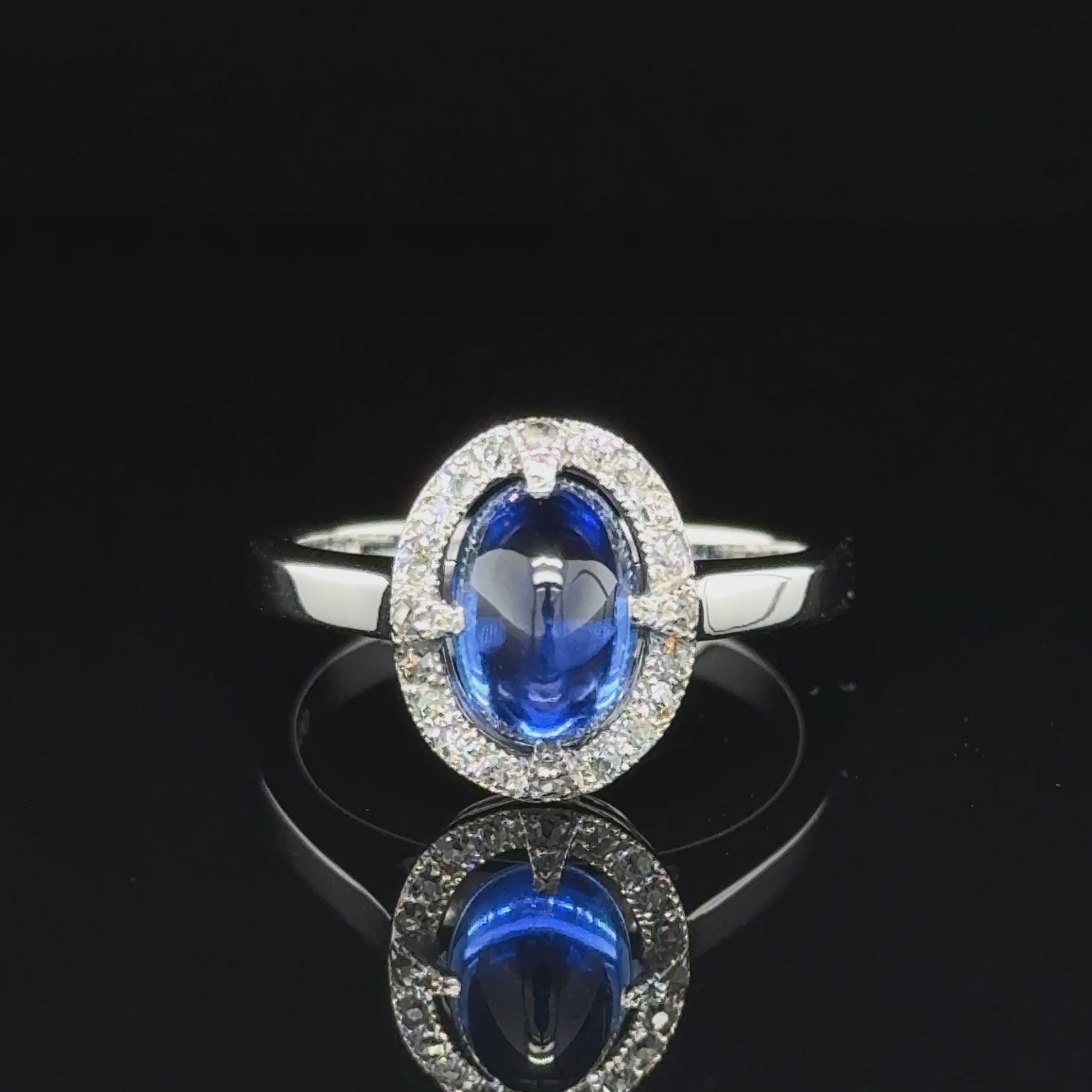 • Center Stone: Natural Oval Cabochon Sapphire (Ceylon/Sri Lanka)