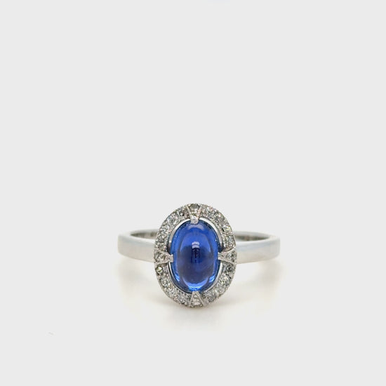 2.90 Carat Ceylon Cabochon Sapphire & Diamond Ring 18k White Gold