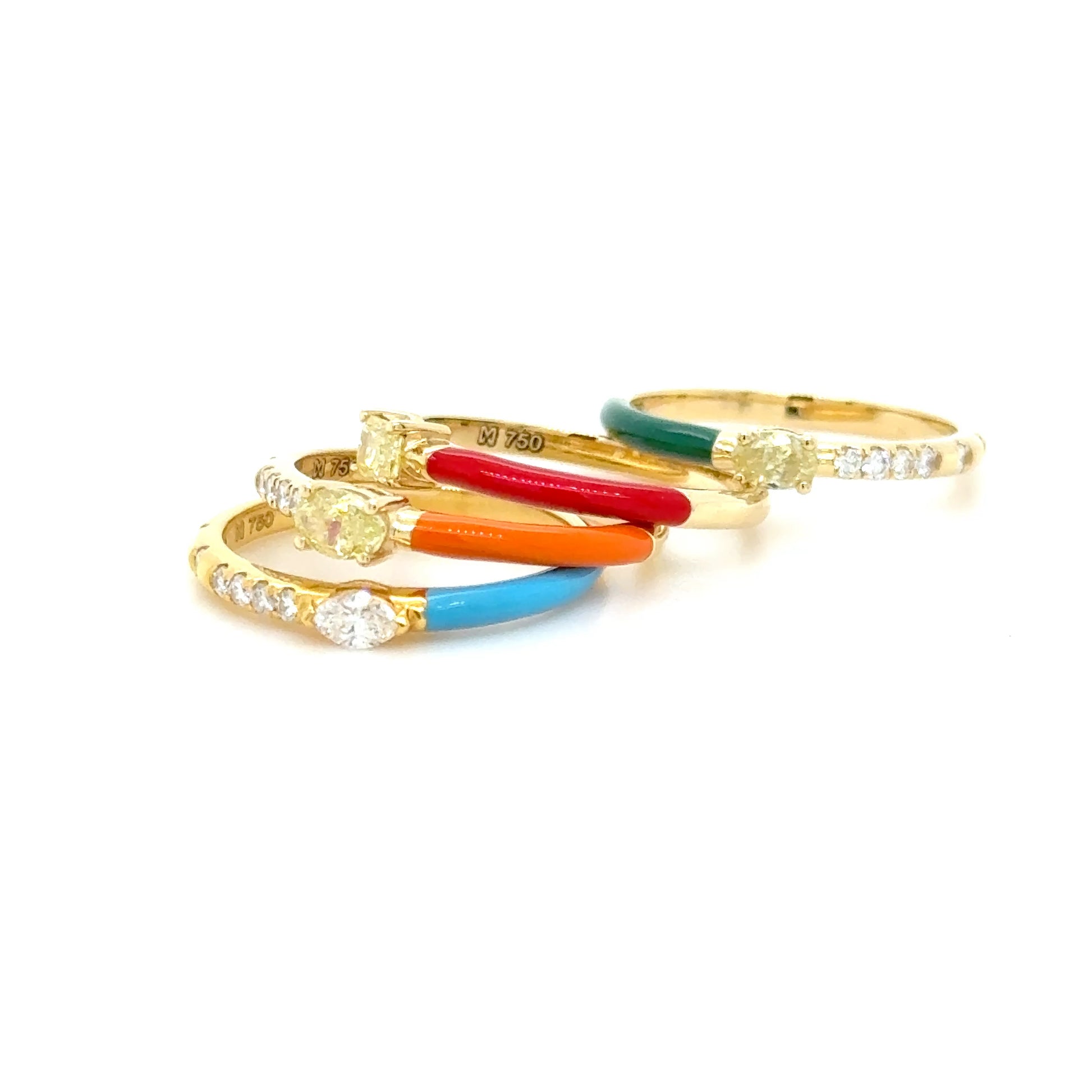 Yellow Diamond & Dark Green Enamel Stackable Ring in 18K Yellow Gold