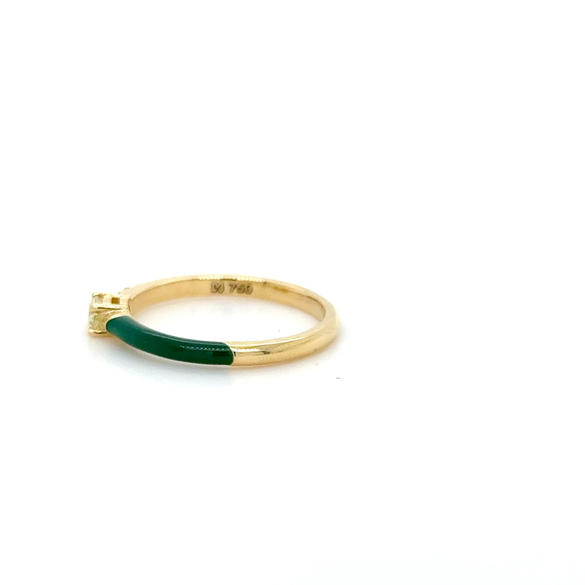 Green Enamel & Yellow Diamond stackable Ring 18K Yellow Gold