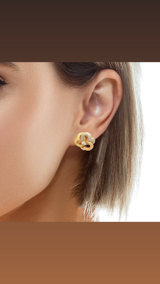 4-Heart Clover Burmese Ruby Earrings 18K Yellow Gold