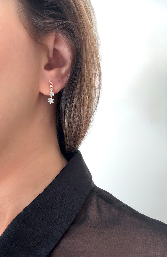 Double Flower Diamond Drop Earrings 18K Yellow Gold