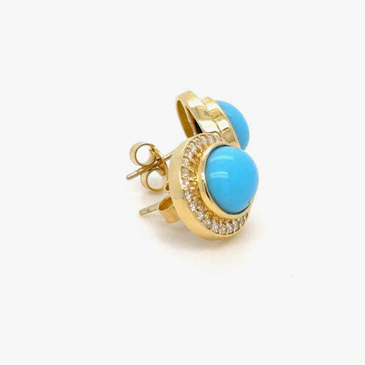 Turquoise & Diamond Earrings 18K Yellow Gold
