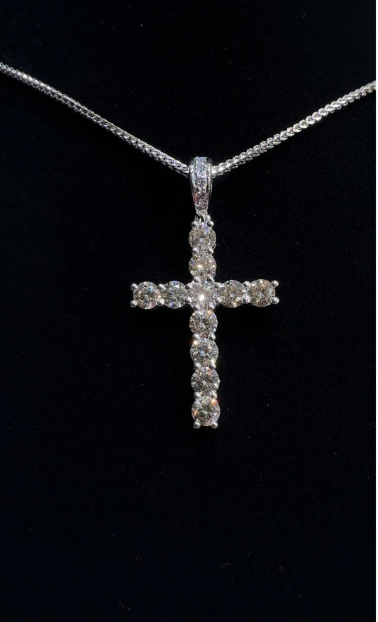 3 Carat Diamond Cross Pendant 18K White Gold