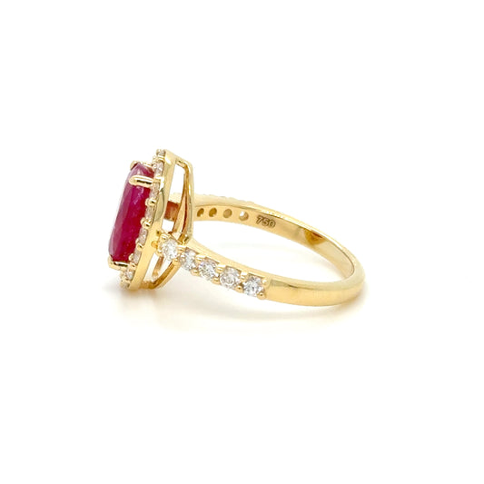 2.92 Carat Oval Mixed Cut Ruby & Diamond ring 18K Yellow Gold