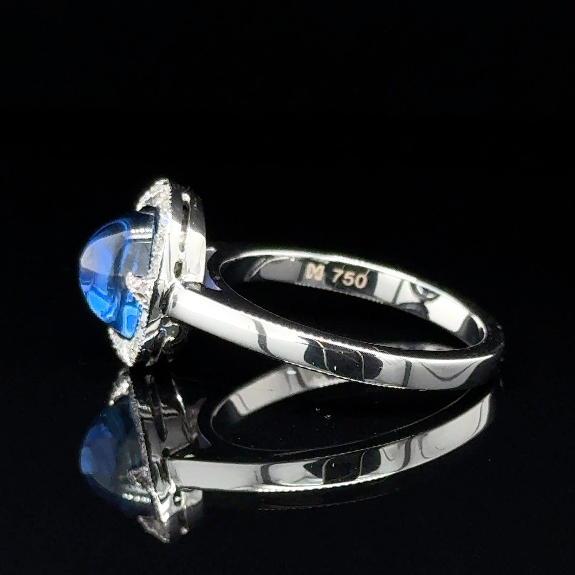 • Center Stone: Natural Oval Cabochon Sapphire (Ceylon/Sri Lanka)