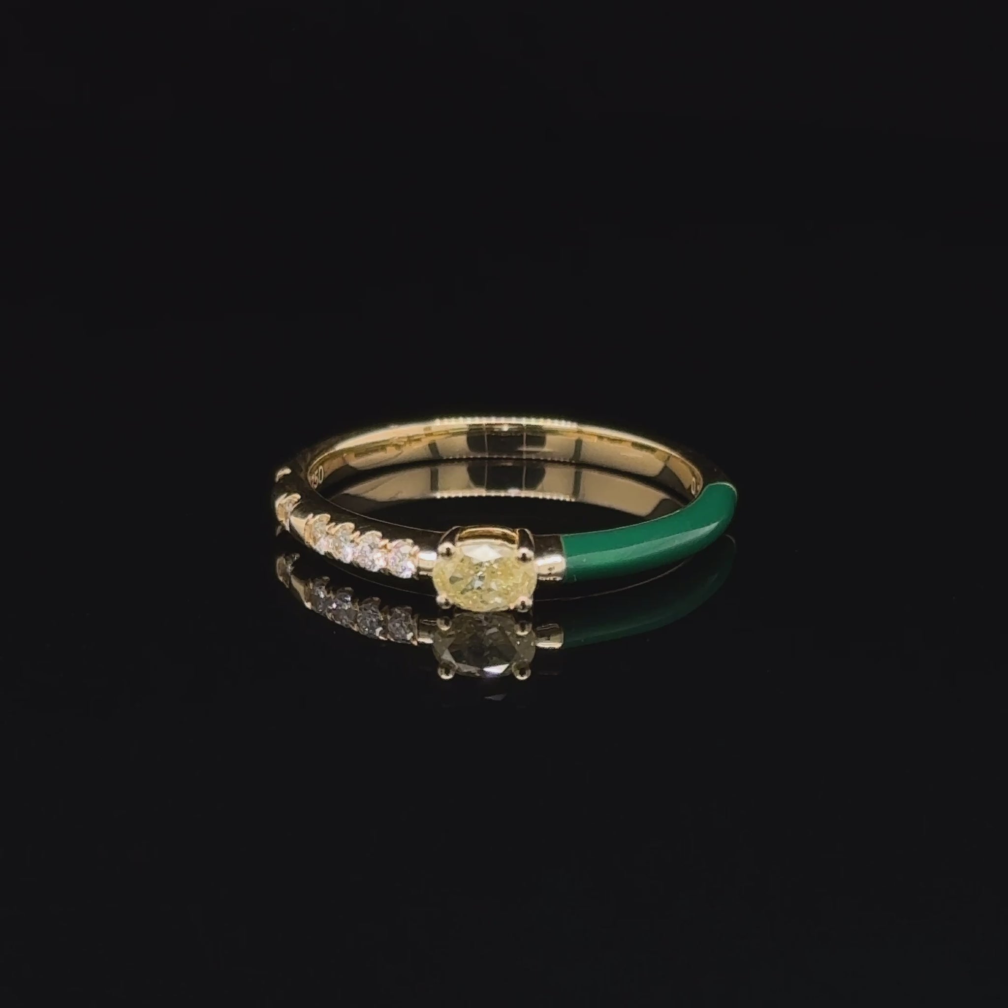 Yellow Diamond & Dark Green Enamel Stackable Ring in 18K Yellow Gold