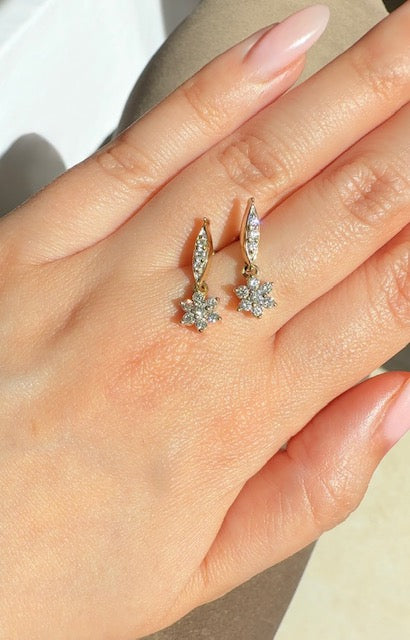 Diamond Flower Drop Earrings 18K Yellow Gold