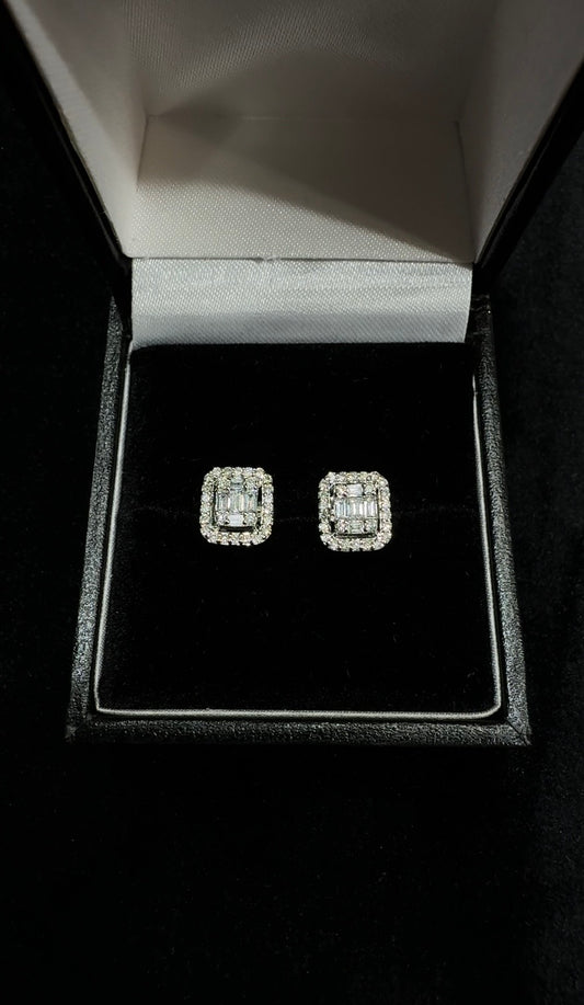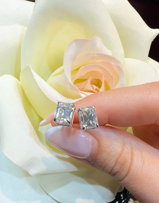 2.33ct. Emerald Cut Diamond Stud Earrings in 18K White Gold