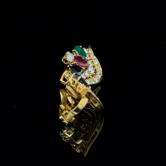 Multicolour Emerald, Ruby, Sapphire & Diamond Cluster Earrings 18K Yellow Gold