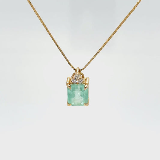 1.88 Carat Colombian Emerald Pendant Necklace 9K Yellow Gold