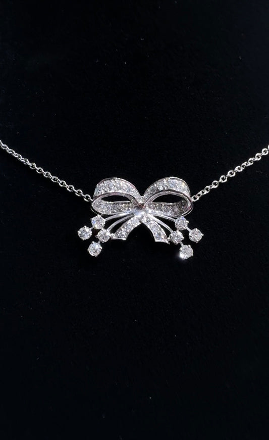 Diamond Bow Necklace in 18K White Gold