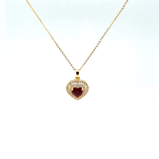 1.05 Carat Ruby & Diamond Heart Necklace 18K Yellow Gold