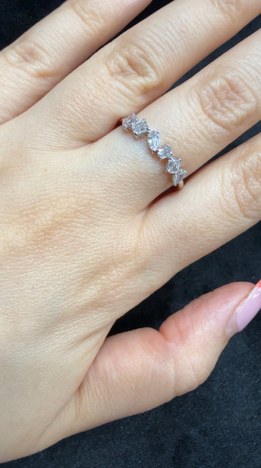 0.60 Carat Mix Cut Diamond Half Eternity Ring 18K White Gold