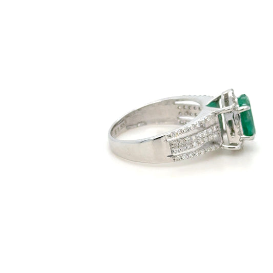 Oval Cut Zambian Emerald & Diamond Halo Split Shank Ring 18K White Gold